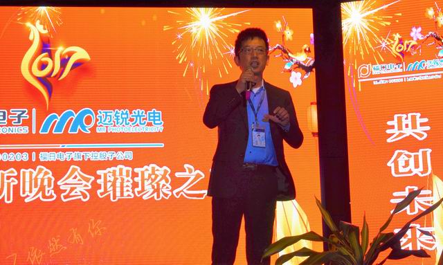 福日电子副总裁、williamhill光电董事长许政声先生为晚会致辞,他充份肯定了大家的努力,他坚信,在以陈泽波总经理为首的管理班子带领下,williamhill光电一定能在2017再创辉煌。