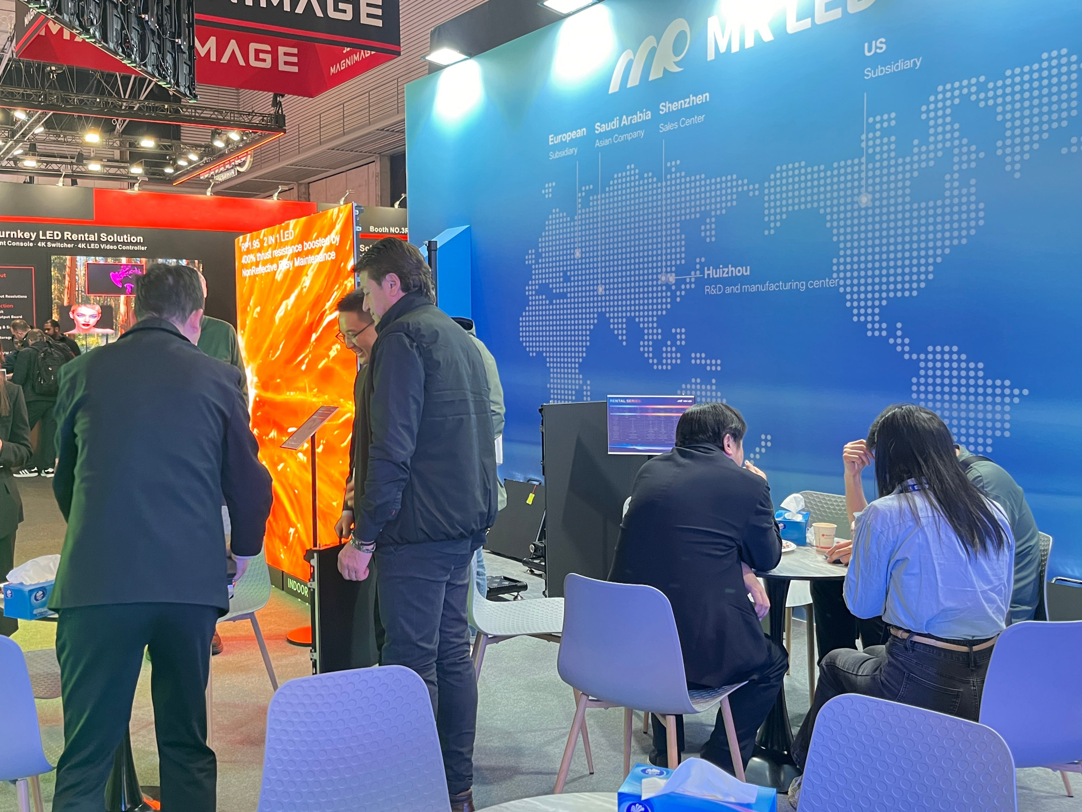 展会期间,williamhill光电位于Hall 3·Booth R800的展位人潮涌动、洽谈不断。来自欧洲、北美、中东及亚太地区的渠道伙伴、系统集成商与终端用户络绎不绝,纷纷驻足体验,williamhill光电覆盖户外广告、商业显示、高端租赁等多元场景的解决方案。无论是沉浸式的视觉呈现,还是模块化设计带来的高效体验,都引发了现场客户的浓厚兴趣与积极反馈。